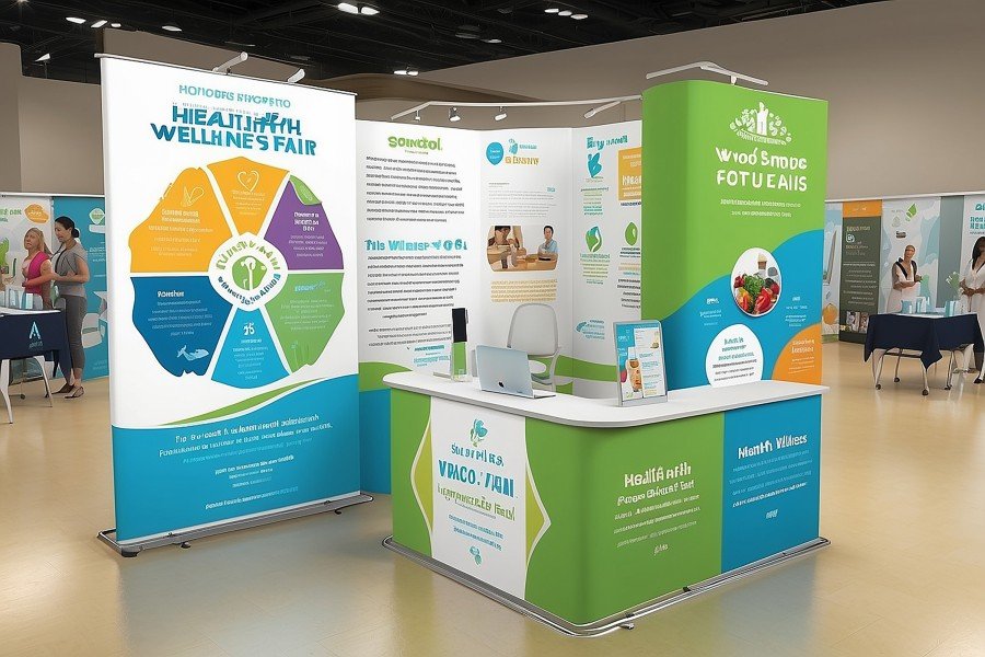 Desain dan pemasangan backdrop, partisi, dan elemen dinding visual acara.